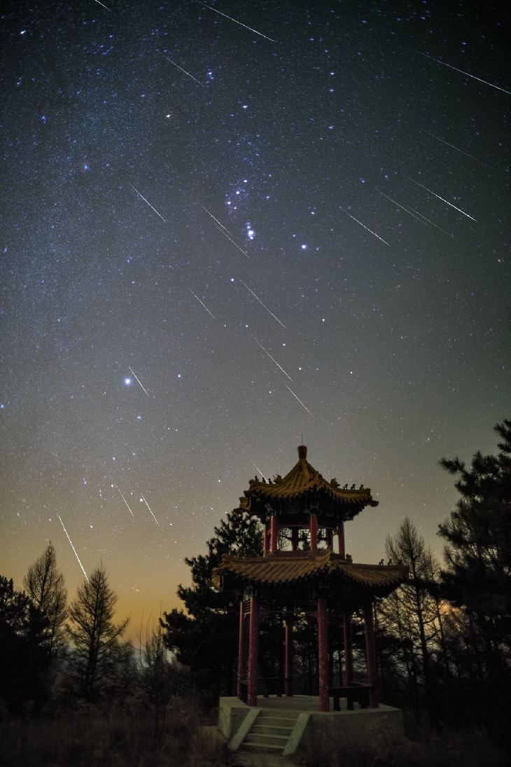 One night Before the Maximum of the Geminids, I captured more than 20 meteors in 140 minutes. What a great meteor shower! Photo details: Camera Model: Canon EOS 6D;Focal Length: 24mm; Aperture: f/1.8; Exposure Time: 15 s for each shot; ISO: 8000, more than 20 exposure are stacked.