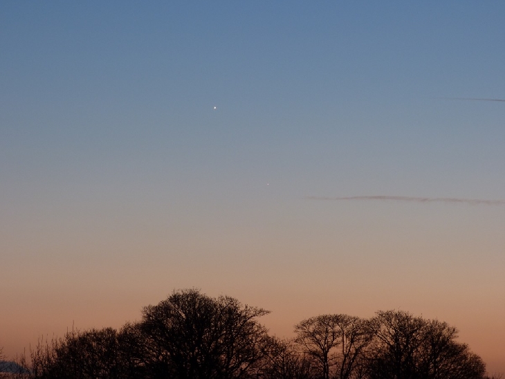 With 5 days before conjunction, a rare crystal clear sky. Had to get high to see in the dusk. Hoping for another chance in the days to come.