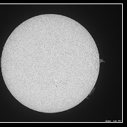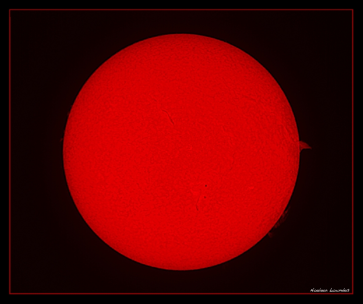 The colour image is close to the colour as seen in the solar telescope and is a composite of two images one for the solar disc and one for the prominences that needs a slower exposure time to bring out the detail. The black and white image is a single stacked image and I used the monochrome setting in the camera, I find this setting shows a lot more delicate detail in the prominences :-)