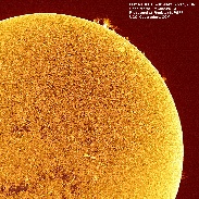 Solar prominences abound despite an otherwise quiet disc. Lunt 60 DSPT; ASI120MM; FireCapture 2.3; Registax 6; PSP7. Variations in post-processing offer differing images. East/West reversed.