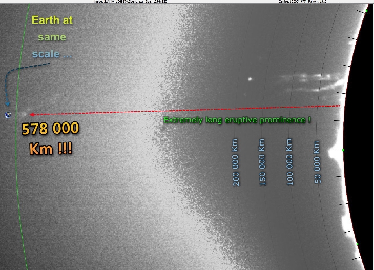 I was doing the live broadcast when I saw a new bright prominence ... I started moving the FOV to see it. After a while it erupted and went to an unbelievable height as shown in the picture presented here !