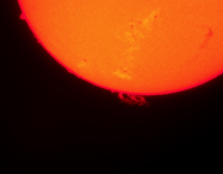 Sunspot activity seems to be increasing. Prominence bright and lasted quiet a few minutes. Settings the same as yesterday. Focusing still poor as they are still j.pegs. Will try short movie clips with ZWO colour camera when opportunity arises.