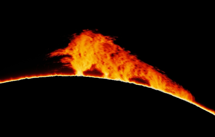I managed to set up and image the Sun in hydrogen alpha light during my lunch break to find a huge hedgerow prominence looming over the eastern limb. It made for a spectacular sight and a great target for imaging.