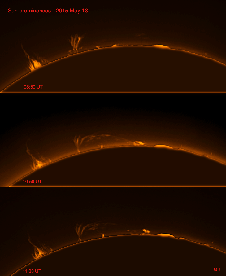 Today again, like happened a few times in the past weeks, the Sun has remarkable prominences including some which are rapidly changing.