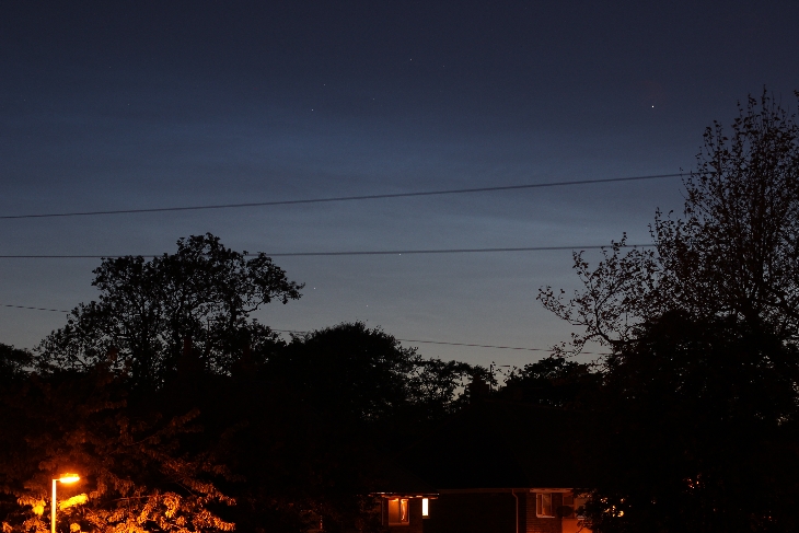 NOCTILUCENT CLOUDS seen fairly faint, with exposures of about 8 to 15 secs variaryng the F stops. Location just North of Liverpool UK