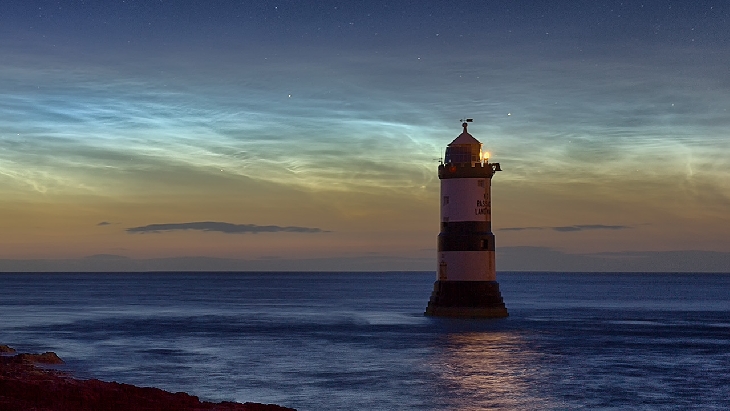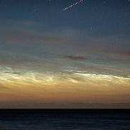 A stunning display Noctilucent clouds lasting 4 hours viewed from a beautiful location with the added bonus of a meteor breaking up in one shot captured during a night long timelapse session