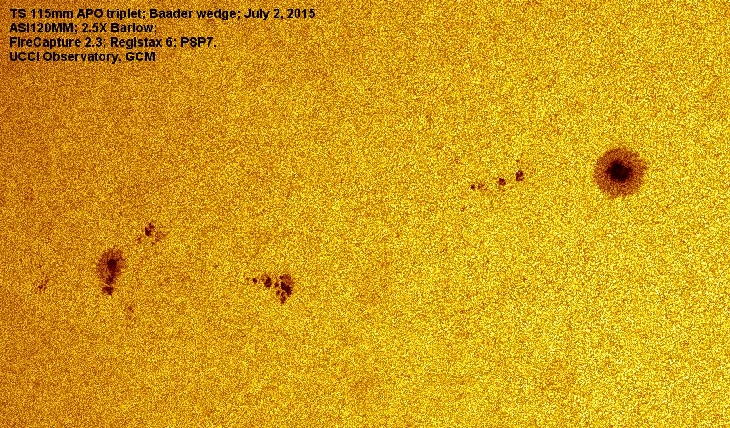 AR2373 & 2376 in white light. AR2373, 2375, 2376 & 2378 in H1a. White light images with TS 115mm APO triplet, Baader wedge and 2.5 Barlow. H1a with Lunt 60 DSPT. Captured with ASI120MM and FireCapture 2.3. Processed with Registax 6 and PSP7. East/West not reversed.