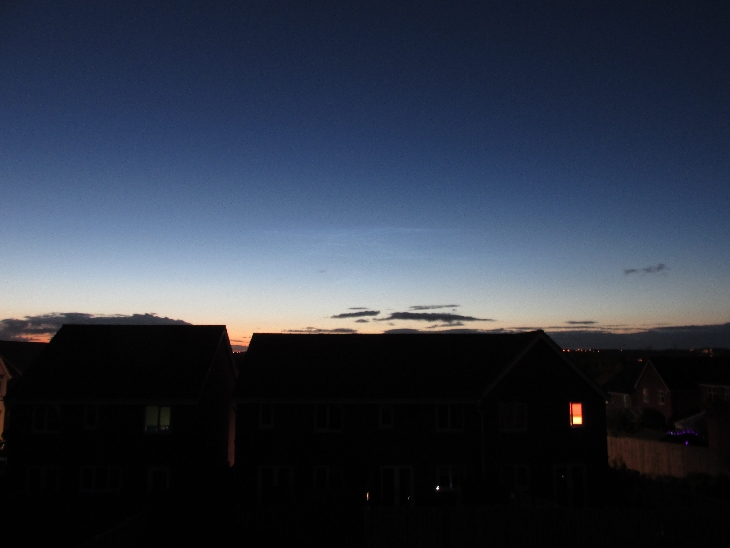 Small display of Noctilucent Clouds in the northern sky.