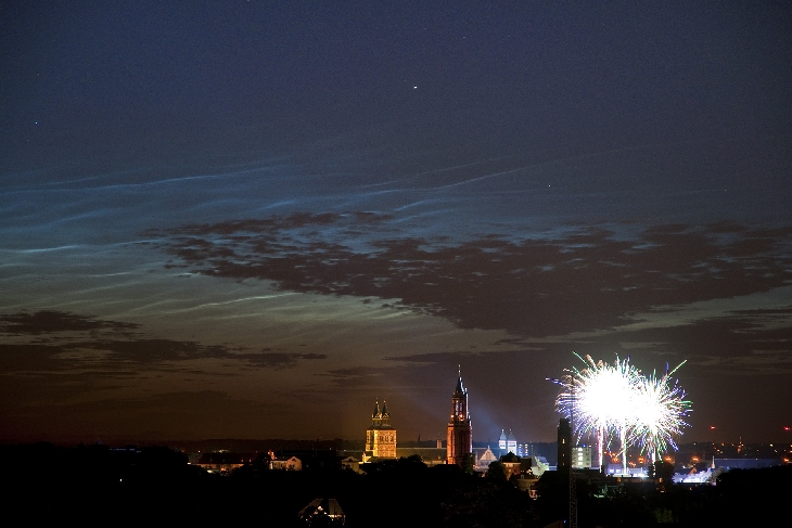 What a treat! A very fine display of noctilucent clouds ánd fireworks at André Rieu's open air concert in Maastricht (NL) tonight.