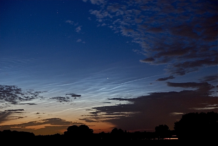 For me also this was the second time, this year, I saw NLC in Nijmegen, Netherlands. (See the beautiful pictures of Rayann Elzein July 10, further on this site!) I had no time earlier to post: because of work, plus many of my pictures are blurred! :( (I had to find the best picture, try to fix the others, but unfortunately...) Friday, July 10th, i saw a first ripple around 23:10, when i was on my balcony. Thrilled as i was, i quickly grabbed my stuff, and drove a mile or 2 with my car. (Earlier that week, 6 july, i was lucky to be with my friend, who lives on the fifth floor in the city, and has a great view!) So, finally, i ended on a beautiful spot in a meadow, and saw that the lines were becoming brighter and more structured! Wow! This looked promising and I had time to 'play' with the camera settings. ;) And which i did. ;) Sadly, suddenly I heard noises and I realized I was all alone in the middle of nowhere! Young people were coming by...and for the second time.. Through my nervousness, the instability of the ground, the camera cord, (i've done the cord back to my neck, I was afraid they would steal my stuff) I do not know what it was... But unfortunately there are many pictures blurred! The next time I ask someone to come along with me! After all: the view was amazing!!! :-) 7/1 f4 ISO 1600