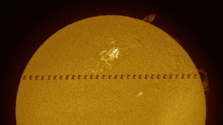 The ISS transits a prominence