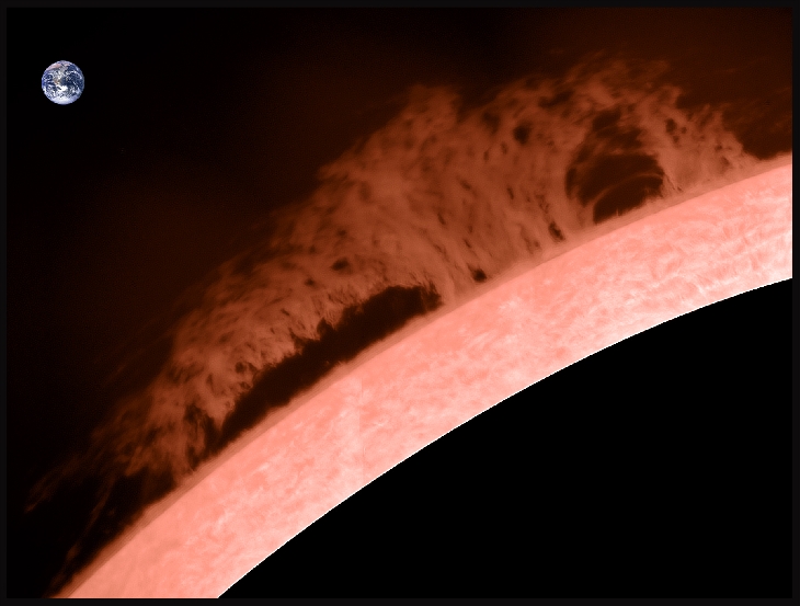 Yesterday a big prom on sun : just fabulous ! 204 mm F/10 H-alpha refractor Istar Optical pst 1A modified + bf-5 / skynyx 2.1 M mosaic of 3 views