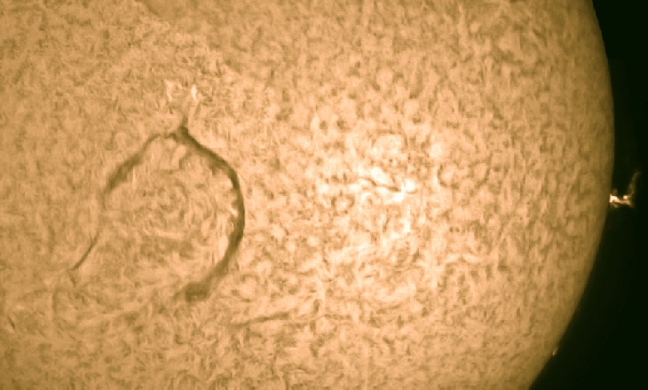 This large filament is on its way to the Western limb where it could become a very interesting feature. This is a composite of two images captured with my 40mm PST, a 1.5X Barlow and a DMK41 camera.