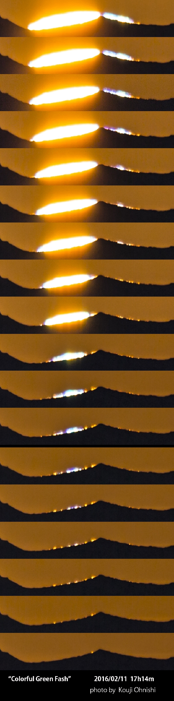 At this time, the sun set over the ridge line of the 3000m has become a green flash, such as the very colorful berry beads. I looked like Green Flash continues nearly 10 seconds in the naked eye.