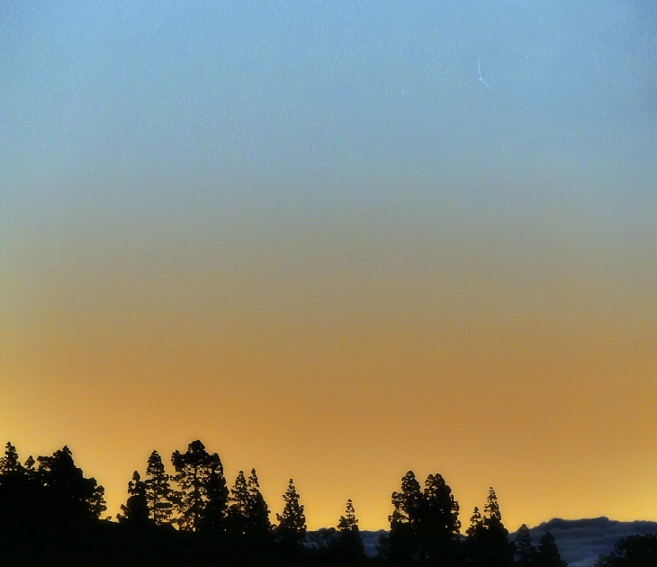 This morning, at 7:26 UT, driving to work, searching for Venus, we saw it just in the moment of occultation. Fortunately I had a camera with me with a telephoto lens and captured it this very moment.