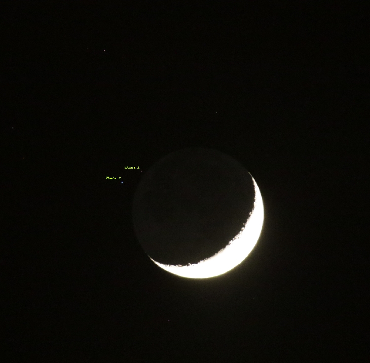 The Moon occults Th 1 and 2 Tauri on the evening of April 10