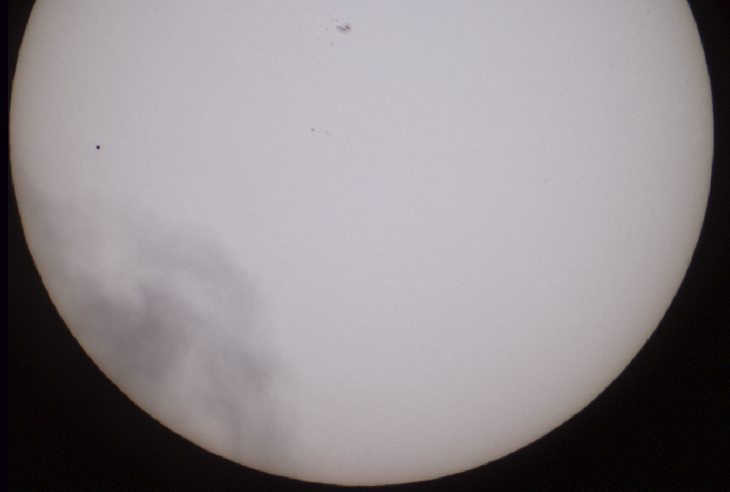 Clouds are doing their best to block the view, but they haven't been entirely successful! A pity the sun isn't more active... 127 mm, f/7.5 refractor with 2.5x PowerMate. ASA100, 1/125 sec. Canon 70D.