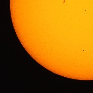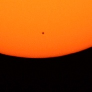 Mercury transit in Juazeiro, CearĂ¡ - Brazil Sum of 30 images obtained at 13h00m22s UT, today, May 9, 2016. Equipment: Canon 700D Camera (Exposure time 1/40s, ISO 100) in primary focus; Telescope Sky-Watcher 254 mm, F / 4.7 (with reduced opening for 125mm / f 9.6), Solar Filter Thousand Oaks, Mount Sky-Watcher AZ-EQ6 GoTo. Software: InfanView 4:38, Registax 6.0, Topaz Detail 3.0.