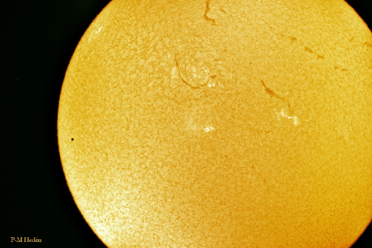 Lovely weather and time with the family. The view through the Solarmax filter and Orion 100ED was amazing but how small planet Mercury is compared to our sun!!Solargazing in my observatory in the backyard with my parents and daughter. Canon 350D and Solarmax60 filter.