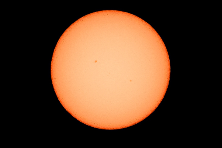 I had to enhance the contrast quite a bit to make Mercury stand out from the rest of the solar disk. Nikon D300s with 70-200 VR II and TC-20E shot at 400mm, ISO 200, f5.6, 1/90s exposure