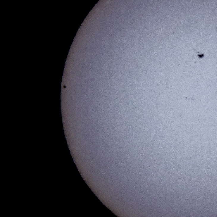 Got super lucky with the timing of my very first shot of the day. Nikon Coolpix P600 with ND5 solar filter foil. One step back from full zoom, f8.0, 1/500sec, ISO-100.