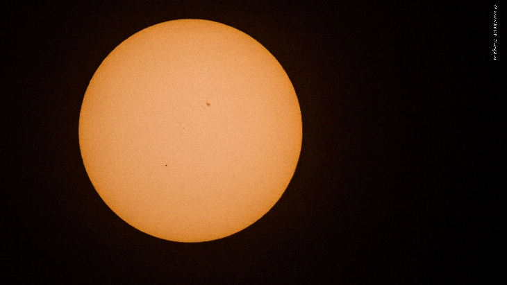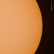 Nice and clear skies, good conditions to photograph the sun today. The sunspots lined up nicely with the little planet. I used my Canon 1d mark iv, a Sigma 600mm, 1.4 extender and a piece of mylar foil snapped on tightly with a sturdy piece of cardboard.