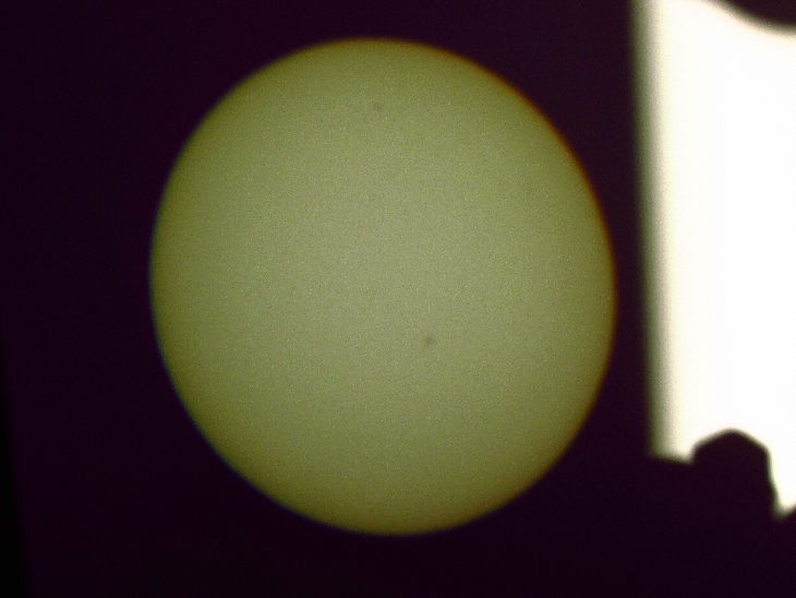 I used 11 x 80 binoculars and projected onto cupboard door.Hand held compact camera. Glad I rushed home to see the rare transit