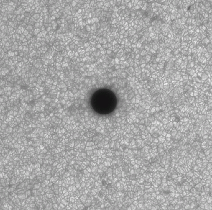 Most of the background granulation movement is caused by seeing distortions. The granulation right next to Mercury is a little bit blurry, this is because stacking is a bit more difficult in that area.