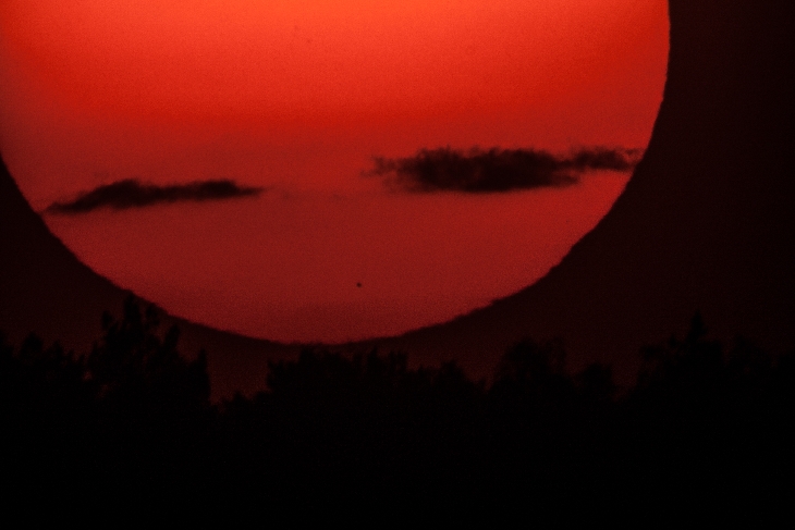 Submitting my photo of Mercury transit taken today, 2016-05-09 17:50 UTC (20:50 UTC+3) in Kopishcha, Minsk region, Belarus. Equipment used: Sky-Watcher 15075 telescope (D=150mm, F=750mm), Barlow lens 2x, HEQ5 mount, Canon 40D (ISO 100, 1/8000). There were almost no hope or possibility to see the full transit, clear sky was just in the beginning of this event and clouds came at ~4pm local time, but almost before sunset sky became clear and I've run to the landing field to catch the last moments of transit could be seen in Belarus today.