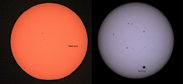 Here's a side-by-side comparison of the transits of Venus (6-5-2012) and Mercury (5-9-2016) from my backyard.