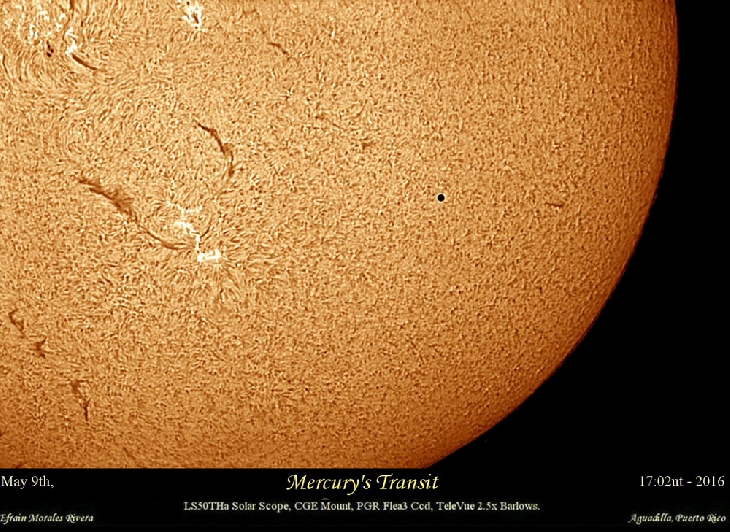 Mercury's Transit Observed in Puerto Rico. on May 9th, 17:02ut. now approaching the western limb of its travel.