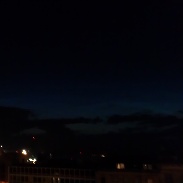 While walking home I saw what I think was an Iridium flare. I followed the satellite as it sped across the sky and it led me to the noctilucent clouds. I only had my smart phone with a 5 Megapixel camera (HTC Desire S) so I set it to low light, auto ISO and hoped for the best. I've included a sunset shot from the same camera and similar view.