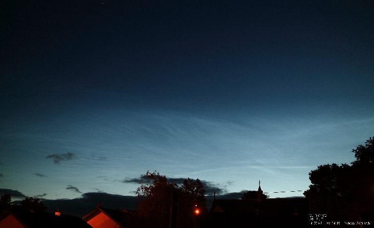 A moderate display of NLC that developed after midnight. Maximum height was 30°.