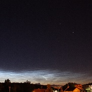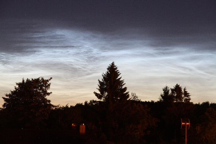 Extraordinarily bright and well-defined appearance of noctilucent mesospheric clouds as seen directly from my balcony terrace in Migowo, Gdańsk, Poland, regardless of sodium street lamps.