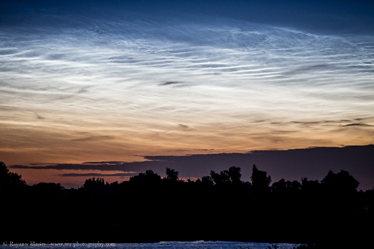 I grabbed my gear and drove to my usual pond, and enjoyed an amazing 45 minutes show. The Noctilucent Clouds were not so high in the sky, however they were the brightest and fastest that I have ever seen!
