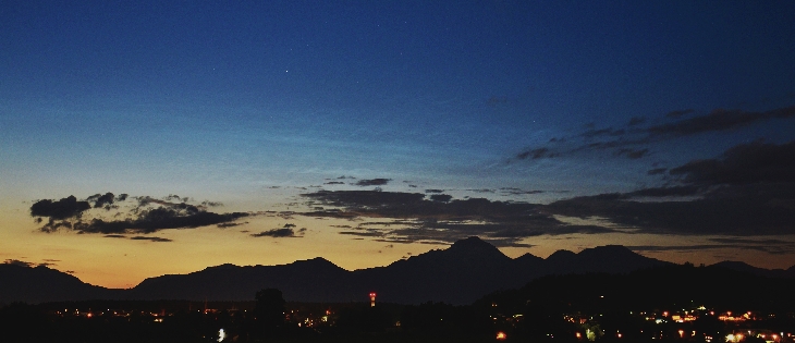 Noctilucent clouds (type "klein aber mein" (small but mine :)) seen from Slovenia yesterday evening. First time in 2016!