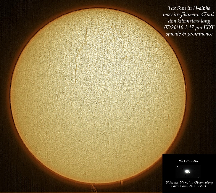 Massive filament about 1/3 diameter of the Sun equal to about .47 million kilometers long! That is some huge twisting magnetic field.