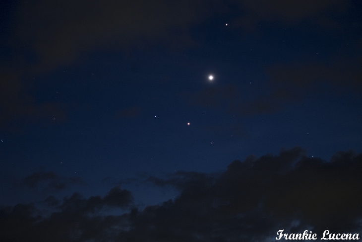 These three celestial wonders were in almost a perfect alignment when I took this photo during a cloudy twilight sky.