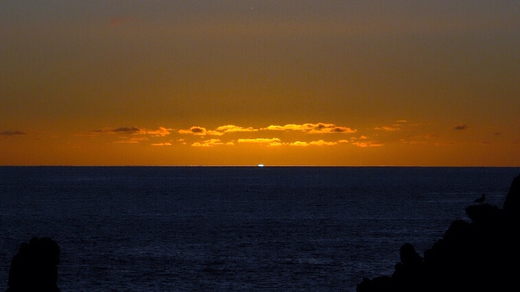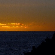 After a zyklone passed last week now the air is very crisp on La Palma island. For three days in a row we were able to see a green flash after sunset. It always lasted for about a second and showed a bright greenish glow during that instant. On the third occasion on Sunday evening we managed to get a shot of the recurring phenomenon from a location near the small town of Puerto Naos on the west side of La Palma island.