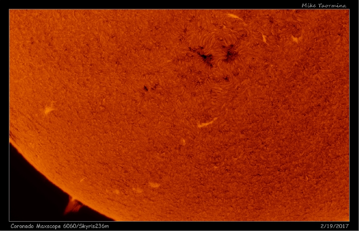 This pair of positive/inverse h-alpha images captured a nice prominence and AR in the same frame.