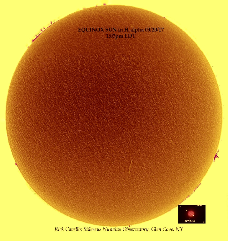 While the Sun was blank from sunspots, there were several limb areas showing prominences celebrating the equinox. There was also a filament to observe as well