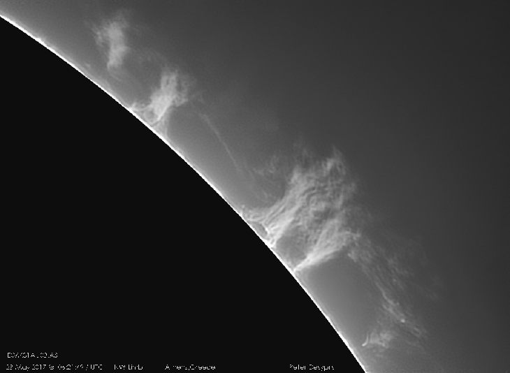 I was surprised after a long time to see an impressive prominence like this one. LUNT LS100THa PT (Single Stacked) / B1800 / Barlow 3X / DMK31AU03.AS