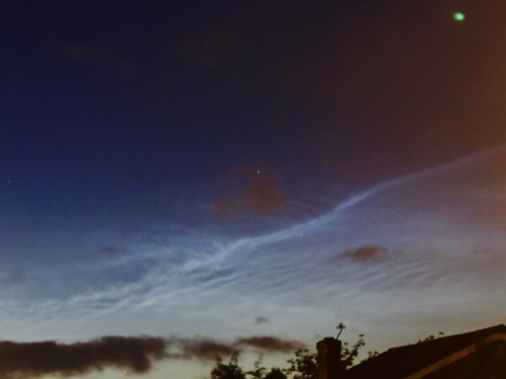 My first glimpse of the current seasons noctilucent clouds taken shortly after midnight. Just as the noctilucent clouds were building, a great big black cloud ended the display. Hopefully there'll be some clear nights in the coming weeks!