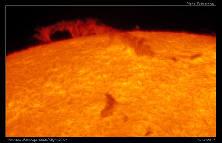 There was an incredible filament that extended across the limb into space to form a beautiful prominence, the likes of which I haven't seen for a while.