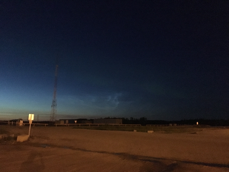 It was just after 1am and I stepped outside to see what appeared to be noctilucent clouds. A few moments later a bright band of aurora appeared above the clouds. It only lasted a few minutes. It was so bright I was able to capture it on my iPhone.
