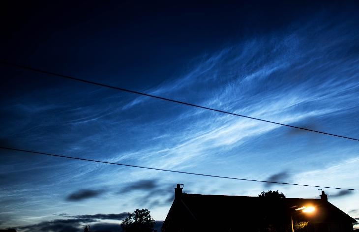 A second night of bright NLC (02/03 July) beginning at 2230 UT and ending with dawn at around 0230 UT. Azimuth from 330 extending to 095 and elevation of 45 degrees.