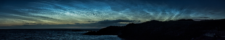 A 13 image panorama of the NLCs over Cemlyn Bay on Anglesey, UK