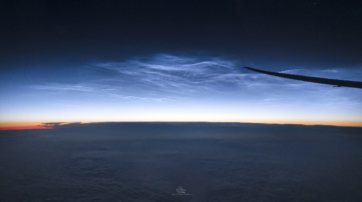 Noctilucent clouds from a commercial plane
