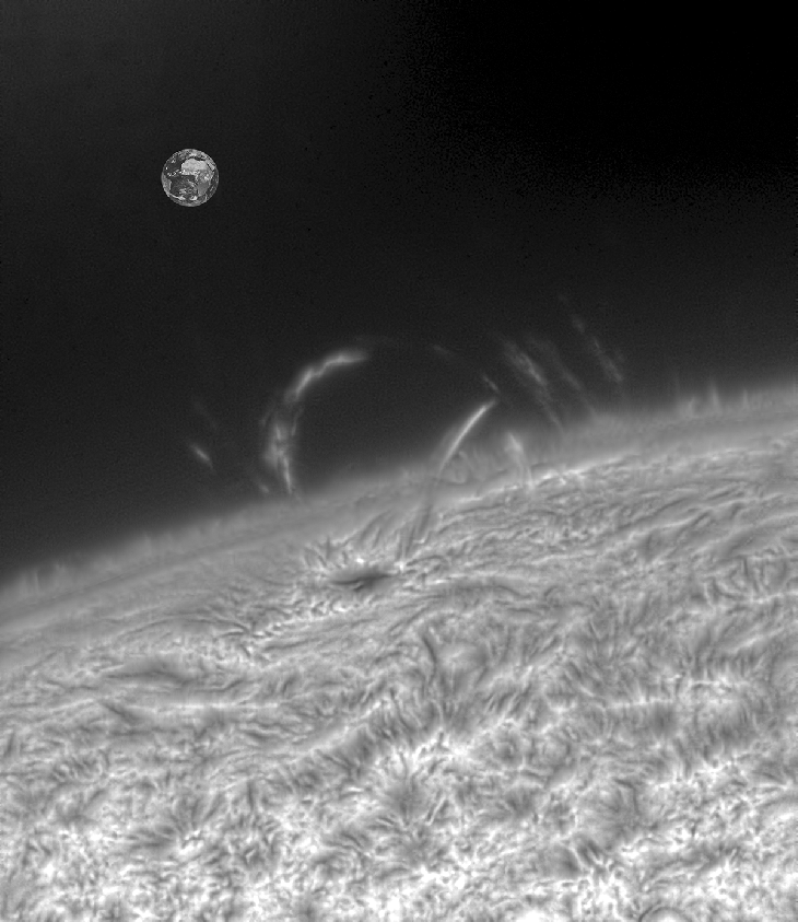 Today morning rises the new active region on the Sun with loop prominance,refractor homemade truss 205 f9 at EFL 7.200 mm filter Daystar Quantum P.e. 0.5A