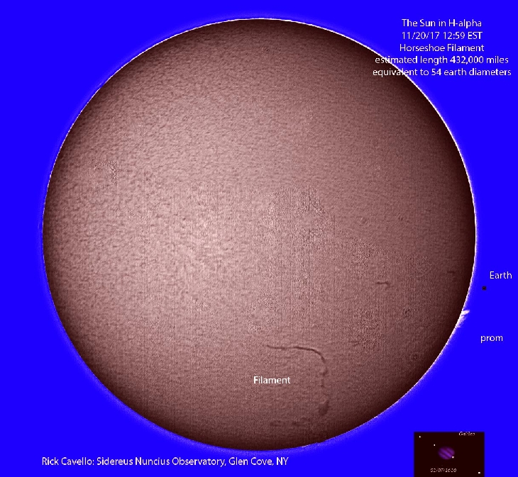Huge Filament, estimated to be about radius of the Sun when stretched end to end; approximately 430,000 miles or 54 earth diameters